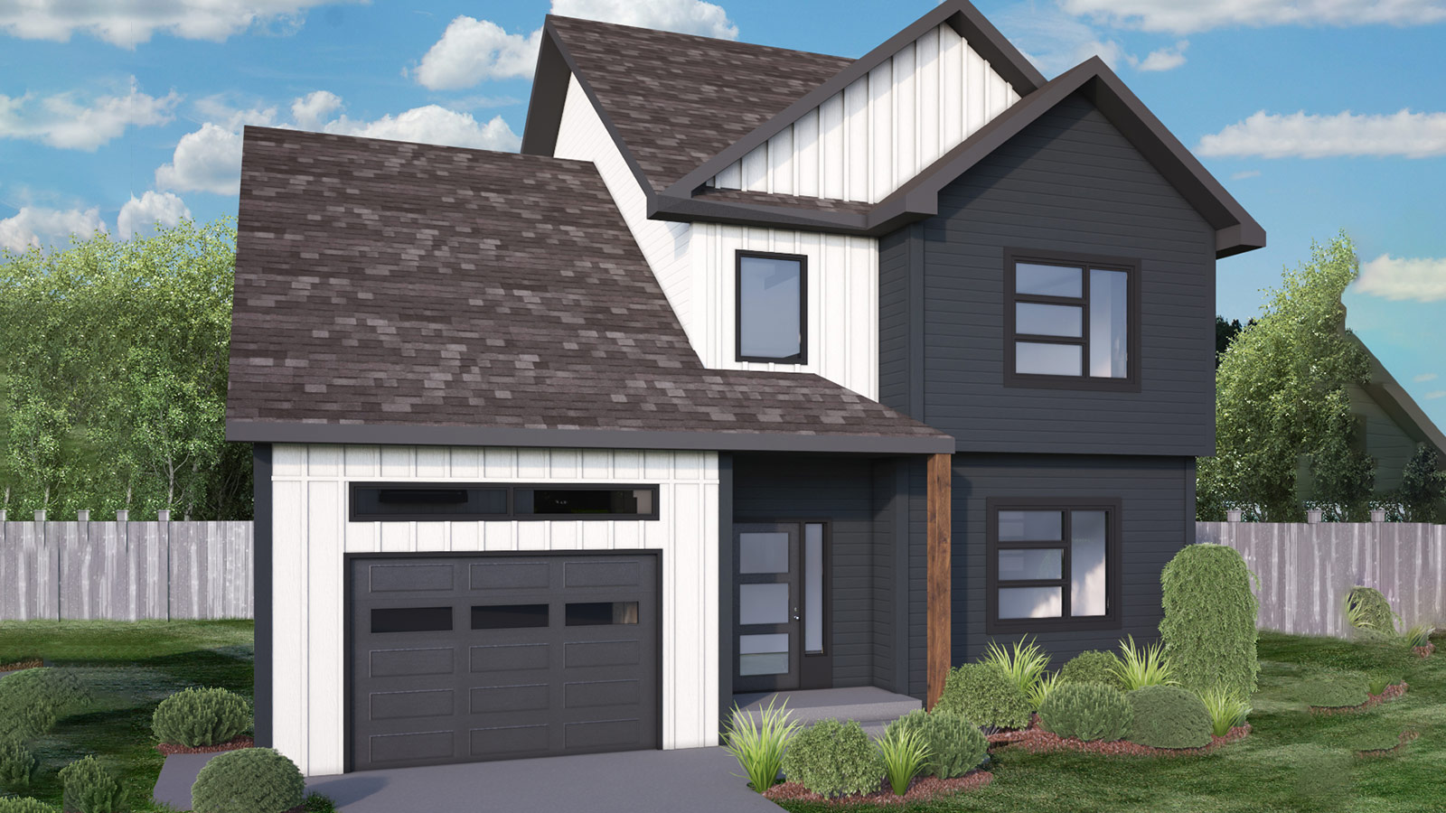 The Trinity is a stunning home, with grand peaks and elegant roofline. This design features an open concept space on the main floor, complete with a corner kitchen, walk-in pantry and bonus room for playdates, private dining or working from home. Upstairs is the private and extra large primary suite with cathedral ceilings and three additional well-sized bedrooms. The perfect home for your family to grow in, especially with the option of an in-law apartment!